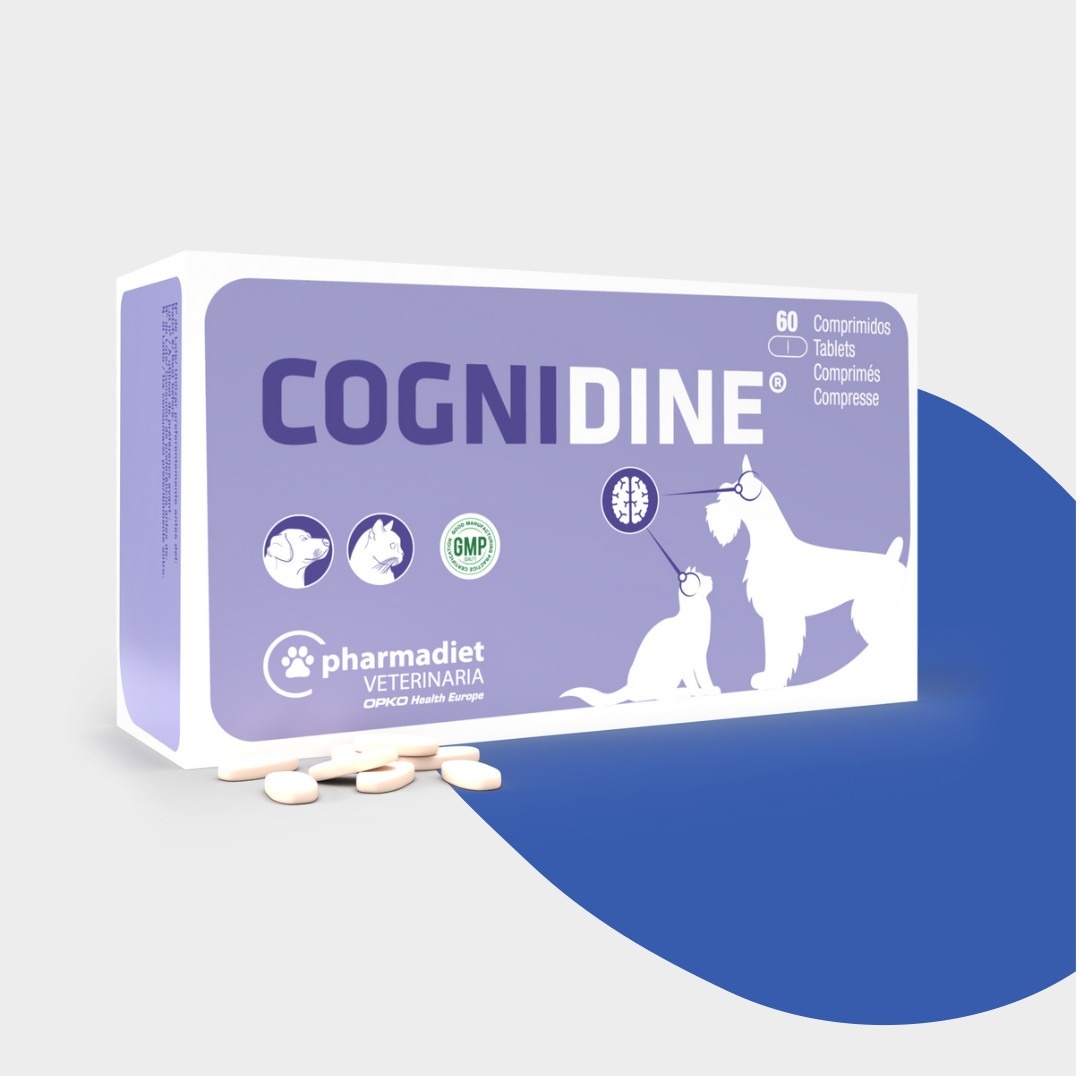 Cognidine para perros y gatos es un suplemento dietético que ayuda a mejorar el enfoque mental, la concentración y el estado de ánimo.